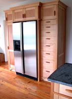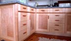 Maple cabinetry using figured panels and heartpine detailing