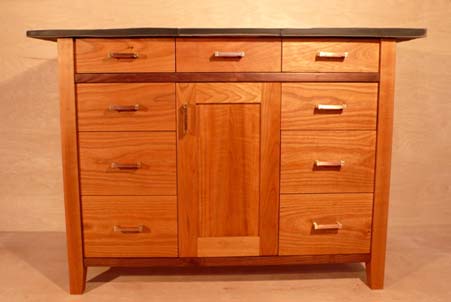 Free-standing bathroom vanity with multiple drawers and surface-mounted