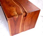 Cherry coffee table, with shelf and dovetail joinery, showing bark edges and sapwood colors.Hand-rubbed oil finish. 52" length, 22" width, 18" height. Available for order.