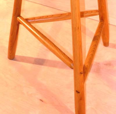 Stool detail showing wedged tennon construction. This stool will. survive a lifetime of use and abuse.