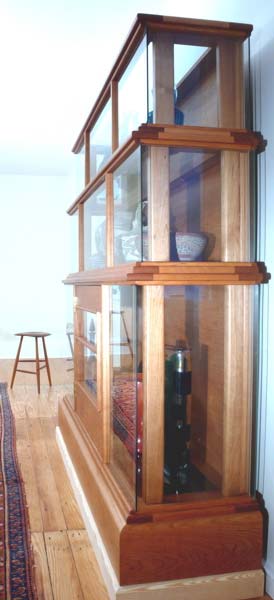 Cherry display cabinet - side view. design by jasper brinton Stool by Wharton Eshrick