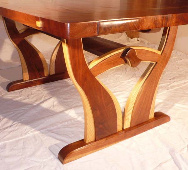 Made with walnut and ash wood, this dining table can be disasembles for easy transport. The finish